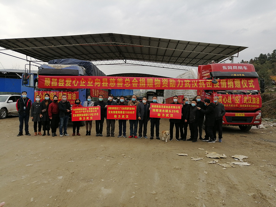 疫情暴發(fā)后,湖北武漢等地區(qū)相關(guān)物資全面告急,縣慈善總會(huì)多方籌措,盡一切所能,積極發(fā)動(dòng)愛心企業(yè)募集救災(zāi)物資。2020年2月25日,第一批由順昌和順通農(nóng)業(yè)有限公司捐贈(zèng)的10噸優(yōu)質(zhì)蘆柑和榕宏農(nóng)業(yè)科技有限公司捐贈(zèng)的4噸流星包菜從從洋墩鄉(xiāng)的順昌柑桔品牌監(jiān)管倉(cāng)出發(fā),奔赴武漢,定向捐贈(zèng)給湖北省烹飪酒店行業(yè)協(xié)會(huì),用于定點(diǎn)醫(yī)院醫(yī)護(hù)人員和患者的供保餐盒制作原材料供給。