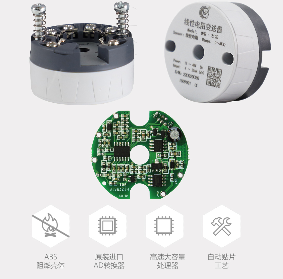 OHR-212線性電阻(磁翻板)變送器,用于線性電阻信號輸入,二線制4~20mA模擬輸出,安裝于傳感器內(nèi)部(Form B)。