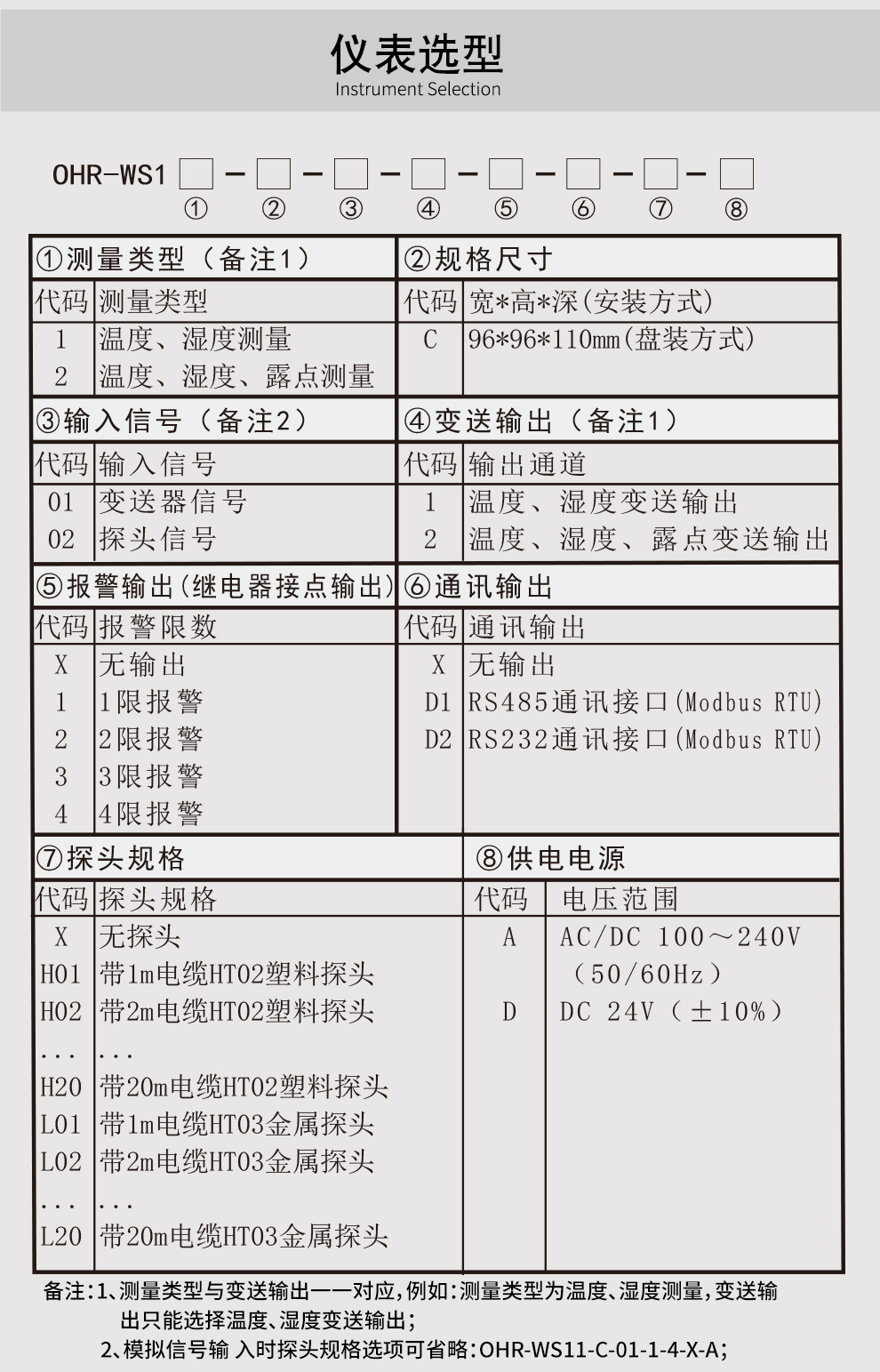 OHR-WS10C系列溫濕度控制儀選型(鼠標(biāo)右鍵另存下載)
