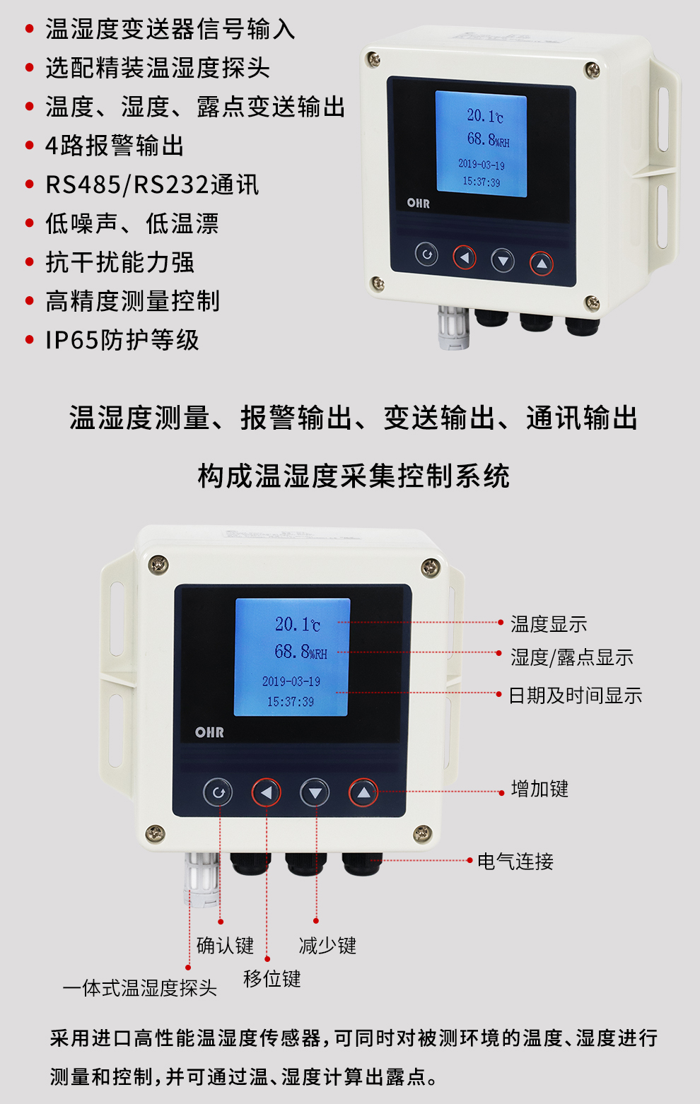 溫濕度控制器以先進的32位ARM處理器為核心,采用進口高性能溫濕度傳感器,可同時對被測環(huán)境的溫度、濕度進行測量和控制,并可通過溫、濕度計算出露點。它具有精度高、穩(wěn)定性強、響應(yīng)速度快等特點,適用于通訊機房、辦公室、醫(yī)院、檔案館、博物館、賓館、樓宇自控等場所的溫濕度測量。
