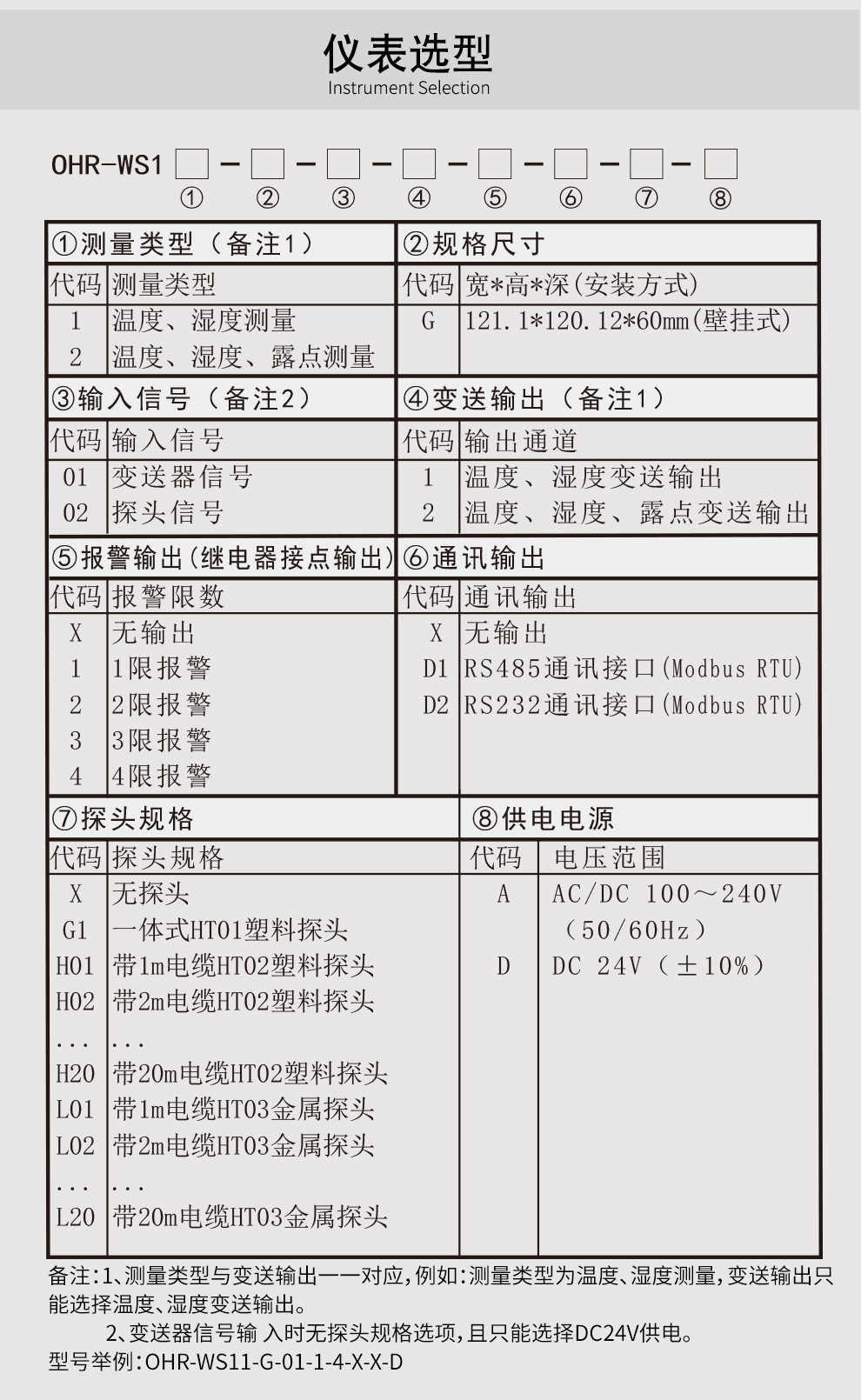 2、OHR-WS10G系列溫濕度控制儀選型(鼠標(biāo)右鍵另存下載)