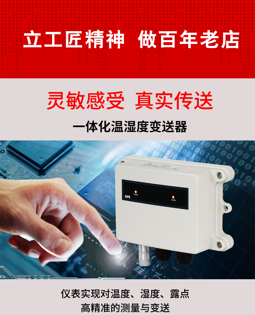 一體化溫濕度變送器電路采用進口微處理器芯片、進口高精度溫濕度傳感器,確保溫濕度變送器優(yōu)異的可靠性。它具有精度高、穩(wěn)定性強、響應速度快等特點,可同時對被測環(huán)境的溫度、濕度進行測量和控制。適用于通訊機房、辦公室、醫(yī)院、檔案館、博物館、賓館、樓宇自控等場所的溫濕度測量。
