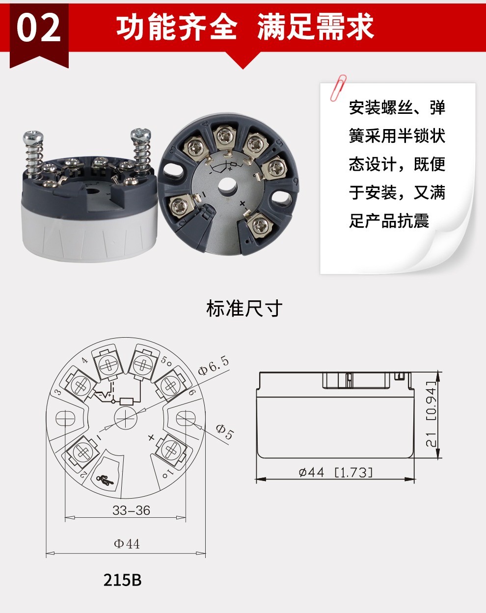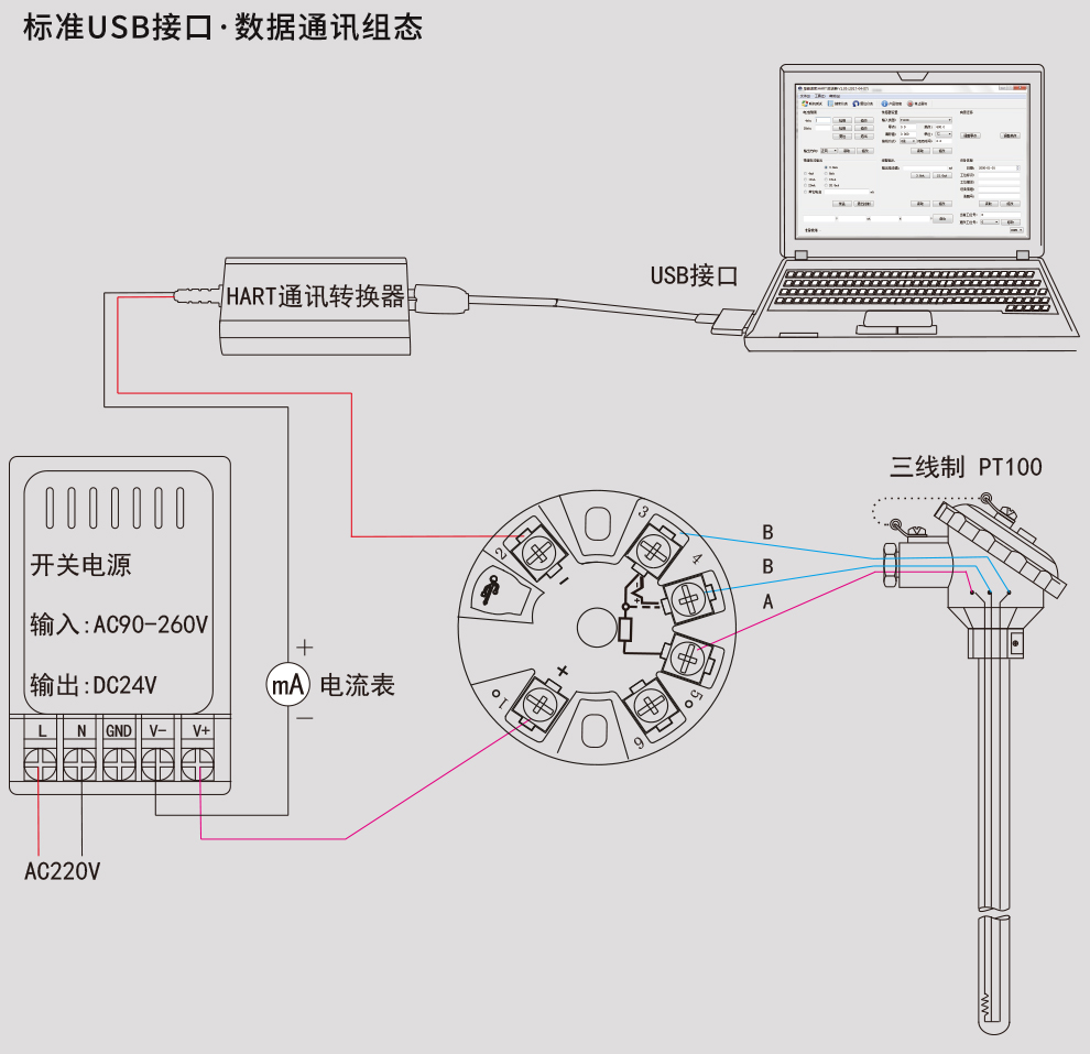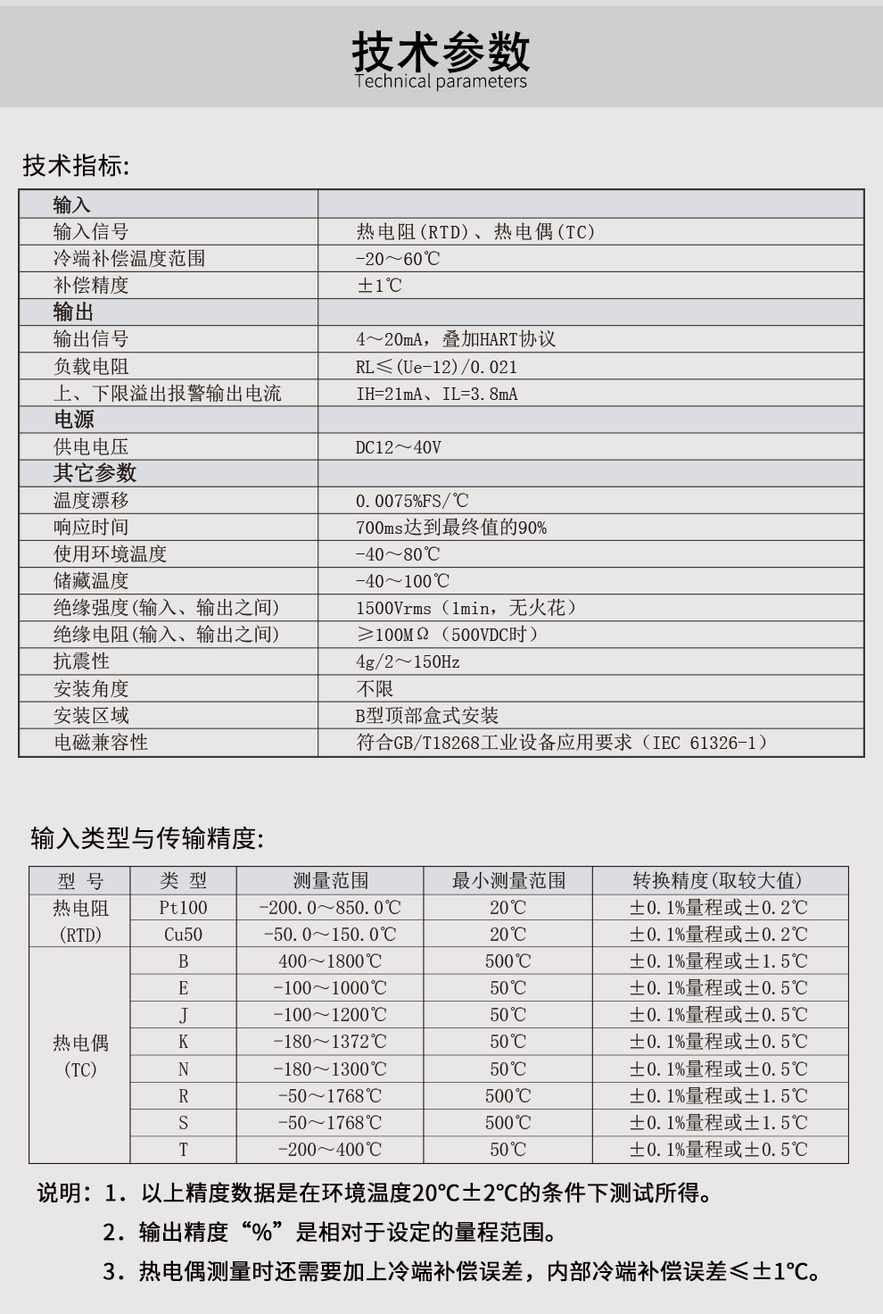 溫度變送器將現(xiàn)場(chǎng)的熱電阻或熱電偶等溫度傳感器信號(hào)經(jīng)過(guò)隔離放大處理,轉(zhuǎn)換為與溫度成線性的二線制4-20mA信號(hào)輸出至控制系統(tǒng)。
