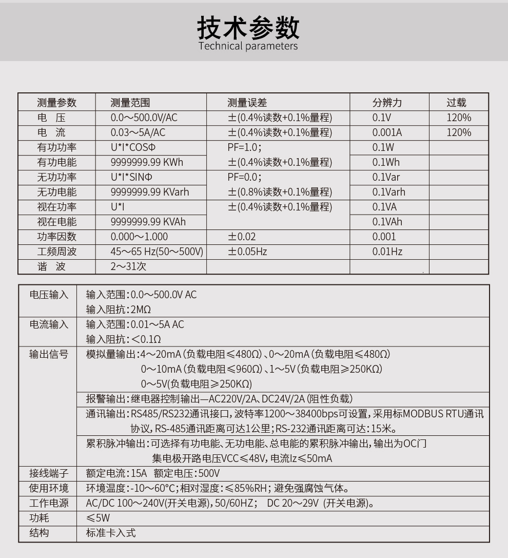 OHR-C300系列三相綜合電量表